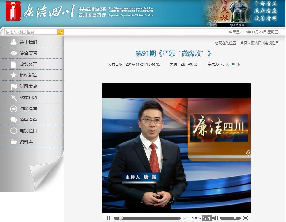 摘要:11月22日,四川省纪委网站“廉洁四川电视”栏目,关注报道苍溪县严惩群众身边的“微腐败”,积极维护群众的切身利益。点击图片查看视频
