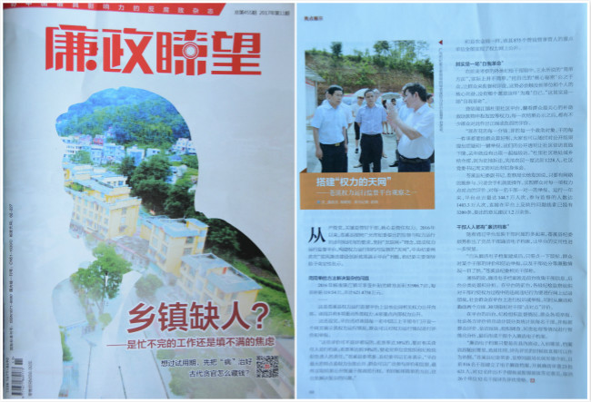 摘要:日前,《廉政瞭望》2017年第14期刊文关注报道苍溪县纪委运用权力运行监督平台严防“灯下黑”。(原标题:严防“灯下黑”的苍溪实践——苍溪县权力运行监督平台观察之三)谁来监督纪委?如何监督纪委?面对由来已久的这一公众疑问,苍溪县纪委以自己的实际行动给出了答案——建立县纪委权力运行监督平台,坚持纪委权力“一网公开”、外部监督“一键直通”、内部防控“一步到位”、监督执纪“一生留痕”。短短一年时间,就有12万人次网上参与对纪委权力和纪检干部的评价监督,发现纪检干部问题线索12条,8人受到党纪政纪处分,4人被免职或调离。 敢革自己的“命”除了公开纪律处分情况外,平台也将信访办理进行毫无保留地公开,如“第六纪工委承办的反映月山乡紫荆村套取易地扶贫搬迁资金的问题,经查属实,相关问题转党纪立案审查。”细心的人还会发现,连县纪委常委会重大决策情况也统统“晒”了出来,比如今年3月14日,十三届县纪委第13次常委会议决定将岳东镇纪委副书记杨佳、三川镇纪委副书记吴亮等7人作为派出纪工委拟调人选,将县人民检察院科员张入文作为县纪委机关拟调人选……记者看到,苍溪县纪委将监督检查权、廉政审查权、信访处置权、纪律审查权、纪律处分权、申诉办理权等6项重点外部权力,以及县纪委常委会重大事项决策权、机关干部调配权、纪检干部推荐提名权、大额资金使用权、绩效管理权等5项重点内部权力统统都在权力运行监督平台上公开了出来。当地一度还有不少人议论:纪委的这些“核心秘密”也敢在网上公开出来?“只有把监督执纪问责的权力亮出来,才能堵住执纪违纪的漏洞。”苍溪县委常委、县纪委书记王永介绍说,这好比是一场“自我革命”,虽然当时有不少反对的声音,但实践证明方向是对的。平台运行一年来,共公开行权依据29个、行权流程126项、行权结果1200余条,全县8次正风肃纪监督检查、657名拟提拔干部廉政鉴定、165件群众举报办理、163件纪律审查、175名干部纪律处分和28次县纪委常委会决策事项、37名纪检干部推荐提名等行权结果做到按月公开。严查违纪的“兵”“某镇纪委书记张某某破坏别人家庭,特请上级领导严肃查处。”2016年10月29日和10月31日,一名群众通过平台举报,时任某镇纪委书记存在生活作风问题。原来,平台除了实现纪委权力全部公开外,还将全县所有纪检监察干部全部放到网上去接受监督。从县纪委书记开始,将委局班子、各工作室、派出纪工委、部门纪检组和乡镇纪委五个类别的纪检干部纳入平台进行管理,将其八小时内外遵守政治、组织、廉洁等“六大纪律”的情况,细化成28项可量化、可评价的指标,群众可随时随地对他们进行点对点的评价和举报。县纪委很快就查证属实,给予当事人党内严重警告处分,免去其镇纪委书记职务,网上公开处置结果并短信回复信访举报人。此外,平台除了把纪检干部个人言行置于群众的监督之下外,还给纪检干部履行职责装上了“监视器”——在平台上设立纪检监察干部监督专区,要求对每一项重点权力行使情况定期进行跟踪监督,对发现的违规违纪问题及时记录留痕,凡出现问题一律进行责任倒查。县级部门一纪检组长就是因为履职不到位而被查处的典型。原来,该纪检组长在对群众反映公职人员从事有偿服务的问题后,没有对涉嫌违纪问题提出明确的纪律处理意见,也未对相关人员进行纪律处分或将相关违纪线索移送县纪委处理。县纪委通过平台发现问题后,对其压案不查、瞒案不报的行为给予了严肃处理。据了解,目前该县将195名纪检监察干部全部纳入平台监督,先后有31名纪检干部被约谈,12人受到党纪政纪处分或组织处理。扎紧制度的“网”“上半年我们镇案件查办、信访办理、平台维护等工作在全县排名靠后,归根到底还是思想不重视、措施不得力……”在近日召开的半年目标工作推进会上,某镇纪委书记当着全县纪检监察干部的面进行自我剖析。苍溪县纪委将,将纪检监察干部绩效奖励、办案补贴、年度考核、评先评优一律与年度目标考核挂钩,以此来激发全县纪检监察干事创业活力。更利用平台对纪检监察干部监督执纪问题和违纪违规情况进行大数据分析,给每一名纪检干部建立了廉洁电子档案,并针对分析得出的干部队伍管理和能力素质方面存在的问题,按照一个风险点一套防控制度,全面排查监督执纪问责的廉政风险,建立健全防控措施和内控机制。针对纪检监察干部中不作为、乱作为的问题,制定了《纪检监察干部“能上能下、能进能出”管理办法》,让想干事者有机会、能干事者有舞台、干成事者受重用的选人用人机制逐渐形成;针对纪律审查中跑风漏气、说情抹案、以案谋私的风险,制定《办案(办信)过错责任追究办法》,全面推行案件主办责任制、质量终身负责制和纪律审查公示制;坚持“机制+机器”,在“行权过程”中为干部监督室设置监督窗口,将制度要求的高线和必须遵守的底线作为监督的重点,网下跟进,网上留痕,让内部防控更加严密。 去年以来,先后选调8名优秀干部到县纪委工作,选拔8名优秀干部到派出纪工委工作;委局机关干部轮岗交流面达80%,分步骤对15名乡镇和部门纪检干部进行了交流。