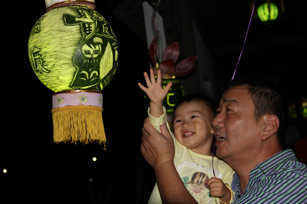 浙江平湖:家规家训 瓜灯廉韵 摘要:浙江省平湖市将勤廉、家训等主题内容注入西瓜灯艺术,在春风化雨、润物无声中向社会播种廉洁理念。 平湖西瓜灯,融雕刻、绘画、书法于一体,是当地独创的民间艺术,堪称浙江一绝、华夏一奇,2007年被列入第三批浙江省非物质文化遗产名录。近年来,浙江省平湖市将勤廉、家训等主题内容注入西瓜灯艺术,在春风化雨、润物无声中向社会播种廉洁理念。 今年金秋之际,由平湖市纪委、平湖市委宣传部以及平湖市文广新局等多家单位联合举办的“树廉洁家风、扬传统美德”西瓜灯创意大赛,吸引了不少瓜灯雕刻爱好者以及师生参与。参赛者们或刻、或镂、或刮、或挑、或绘,刻刀飞舞间一盏盏别具创意的瓜灯艺术品跃然面前。除了荷莲松竹等具有廉洁寓意的图案内容,中国历史上的一些廉洁正气人物以及优秀的家训家规也都通过西瓜灯艺术唯美地展现出来,成为一道独特而靓丽的风景线。 “谁把甘瓜巧琢成,清荧别见一轮明。”当夜幕降临,华灯初上,绿野之中,长廊之下,一盏盏西瓜灯不仅玲珑剔透、美轮美奂,而且与仲秋的明月一起,散发出阵阵清风正气。(浙江省纪委)游客正带着孩子欣赏悬挂在长廊上的廉政瓜灯